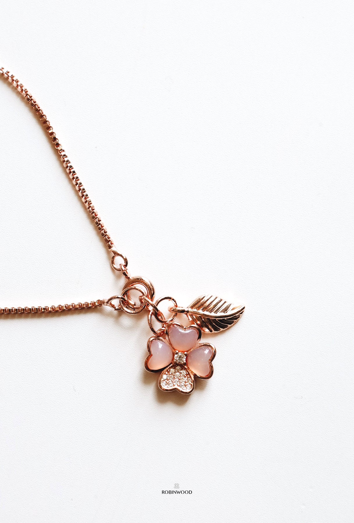 Story :  นำเสนอความพิเศษมากๆ กับ การนำ Pink Mother Of pearl สีชมพูอ่อนสวยงาม และหายากมากๆ มาออกแบบเป็น จี้โคลเวอร์สีชมพูอ่อน ที่ไล่เเสงสวยงาม ที่ใช่เวลาคิดค้น และทำนานมากกว่า 1 ปี ที่นำมาเจียระไนเป็นรูปหัวใจ พร้อมทั้งความหมายพิเศษของ " Four Leaf Clover ความหวัง ความรัก  ความศรัทธา ความโชคดี " เป็นดอกไม้ที่โชคดี สำหรับทุกๆวัน EveryDay LookBook By Robinwood