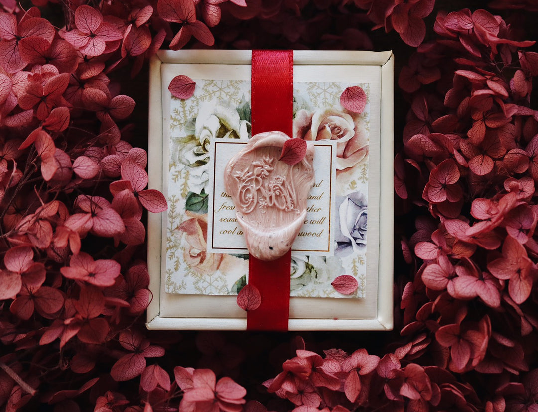 Every order include Elegant Gold wax seal stamp gift box with vine ribbon color