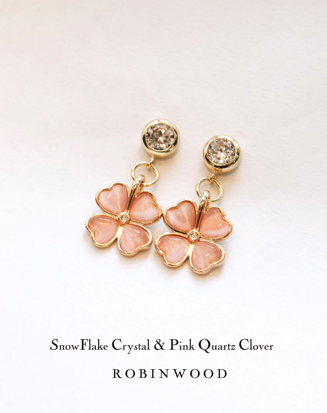 LIMITED COLLECTION " SNOW FLAKE CRYSTAL & ROSE QUARTZ CLOVER " SERIES, ROBINWOOD MASTERPIECES