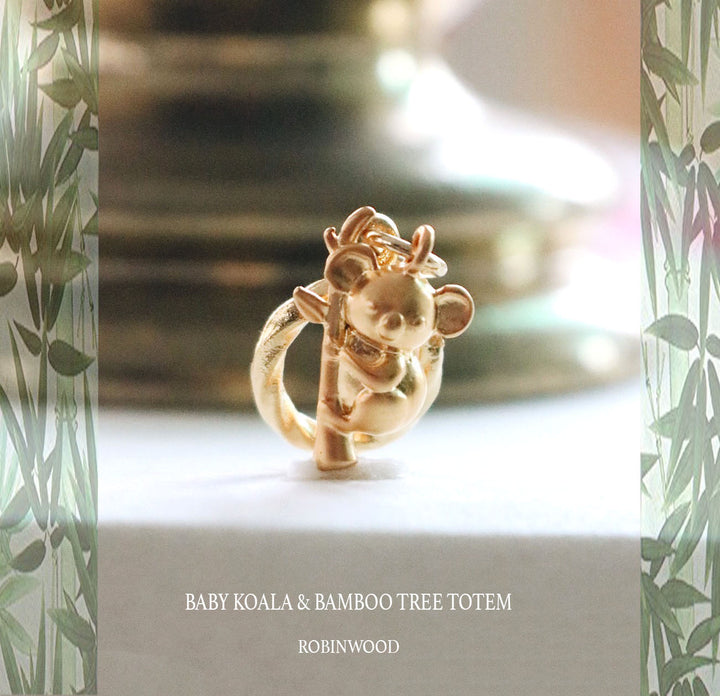 14 K Australia Koala Bear & Little Bamboo Tree Totem Desigm, Robinwood Totem, Charm, Masterpieces, Gift For Her